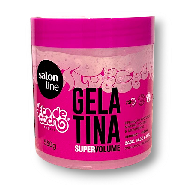 Experimente misturar a Gelatina #todecacho Super Volume com seu Ativador de Cachos Salon Line preferido para melhores resultados.