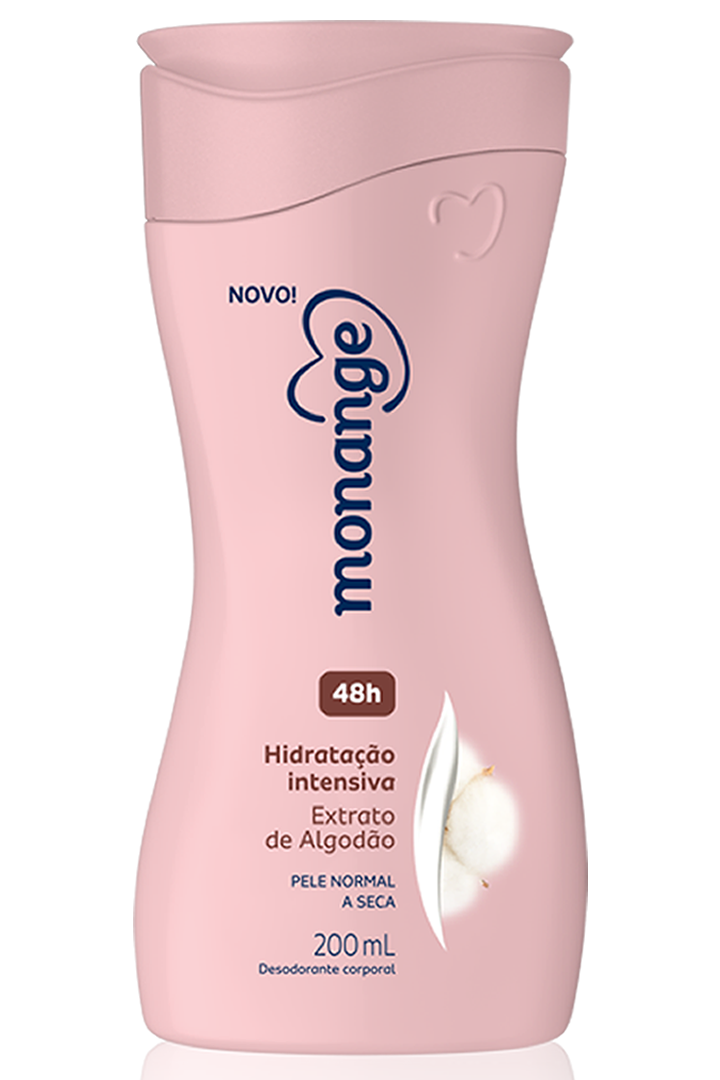 Com Extrato de Algodão, o Hidratante Desodorante corporal Monange, hidrata por até 48h, combatendo os 4 sinais do ressecamento da pele além de oferecer textura leve e rápida absorção, ideal para peles normais a secas.