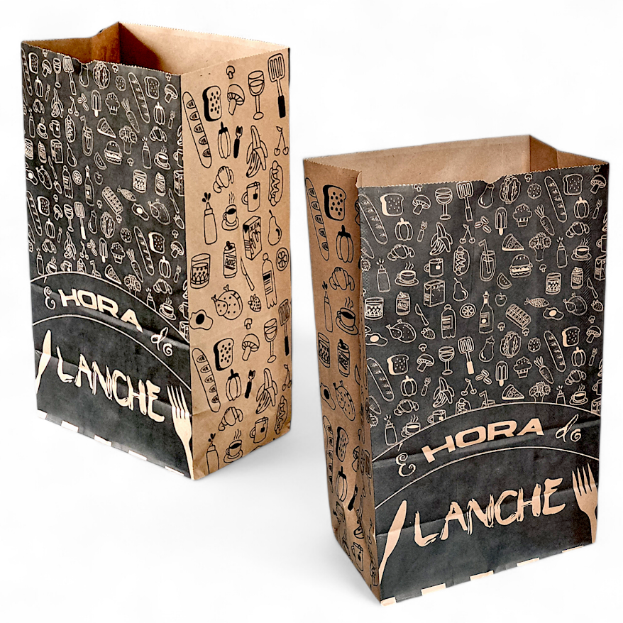 - Estampa Temática: O tema "Hora do Lanche" agrega valor estético aos sacos, tornando-os atrativos para clientes de lanchonetes e restaurantes.
