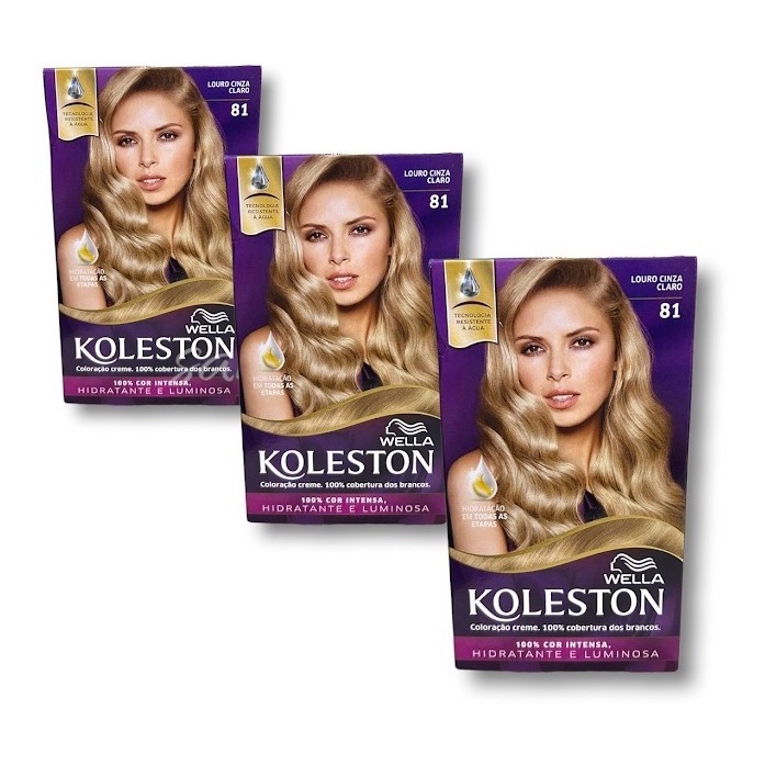 Tinta para Cabelos WELLA KOLESTON 81 Louro Cinza Claro - 3 Unidades